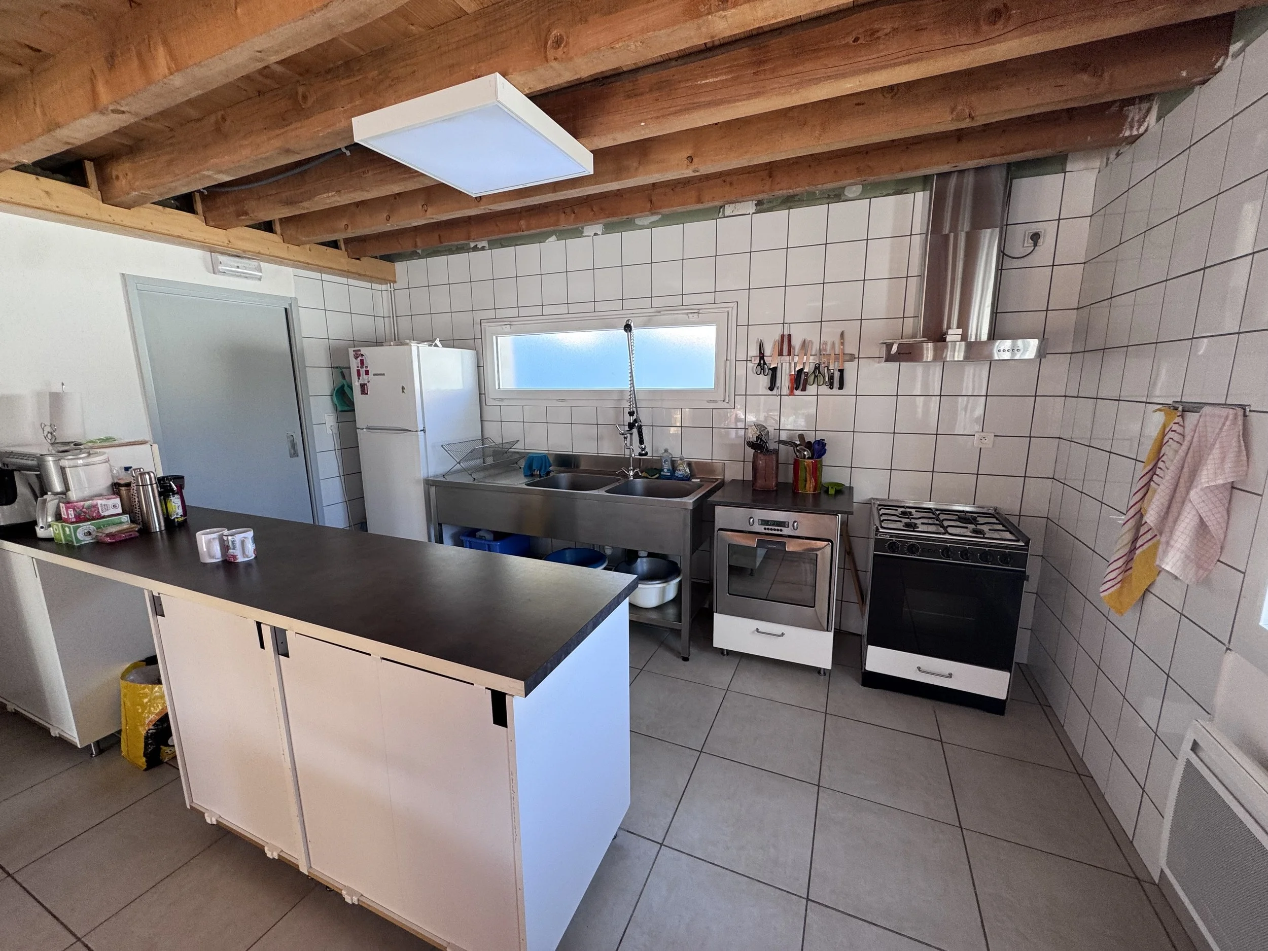 Au rdc, une salle de vie, une cuisine, 2 douches et un wc.