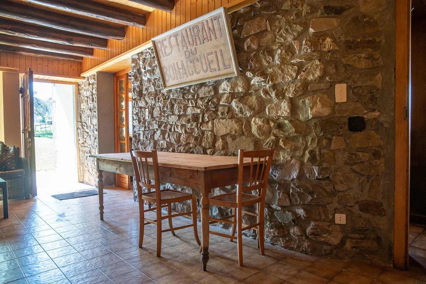 Au rez-de-chaussée, se trouve une cuisine équipée, un salon-salle à manger avec cheminée foyer fermé exposé sud-ouest